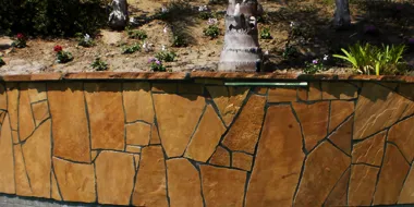 Synthetic rockwork is very common in backyard pools, but the paint, which is used to replicate natural color of rocks, tends to fade away with time.